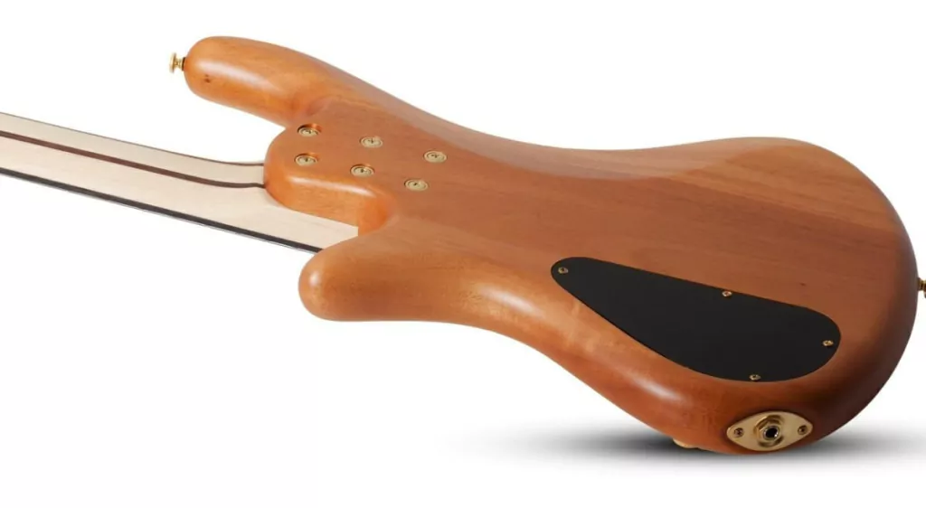 El mastil de arce y nogal atornillado y el diapason de palisandro han sido disenados con una fina forma de"C" para un juego suave y rapido. El uso de arce y Walnut para el mastil le da a la guitarra unas caracteristicas de sonido brillantes, con mucha calidez. Las dos maderas trabajan juntas para producir bajos firmes, altos crepitantes y un ataque rapido en los medios. Anadiendo un diapason de palosanto, el timbre se vuelve mas calido y suave, con agudos brillantes y graves gruesos. El bajo tambien viene con muchas otras caracteristicas, incluyendo afinadores Schecter, una tuerca Graph Tech, e incrustaciones de puntos en offset perlado en el diapason.