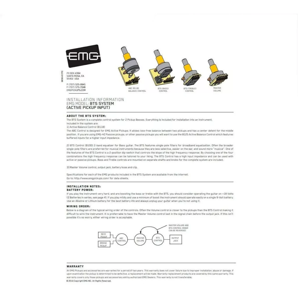 Importante: Los circuitos activos Emg solo funcionan con microfonos activos Emg, no con otras marcas.