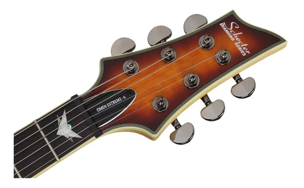 El diapason Palisandro es naturalmente aceitoso y funciona bien en cualquier superficie que tenga contacto frecuente con el ser humano. Los tonos perdidos se absorben en los vertidos de aceite, haciendo que el sonido sea mas rico que el de un diapason de arce. El mastil de arce resistira la prueba del tiempo y el uso, ya que reacciona menos a los cambios ambientales que otras maderas duras. El Schecter Omen Extreme 6 tambien cuenta con afinadores de alta calidad con un diseno clasico en una carcasa lubricada y sellada para proteger los equipos durante toda la vida.