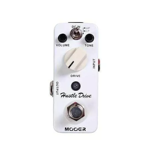 El pedal Mooer Hustle Drive Overdrive ofrece una amplia gama de opciones tonales en un diseno compacto y sencillo. Tiene dos modos de overdrive que son muy diferentes. El modo de alto pico (HP) aumenta el extremo inferior. Al aumentar la distorsion a traves del mando de la unidad, se obtiene mas volumen y un ligero aumento en la gama alta-media (alrededor de 3,5 KHz). El modo de bajo pico (LP) colorea el sonido original muy poco, pero funciona bien para mejorar la limpieza. Su carcasa de metal completa hace que sea durable y listo para el camino, y como la mayoria de los pedales de efectos grandes tiene true bypass.